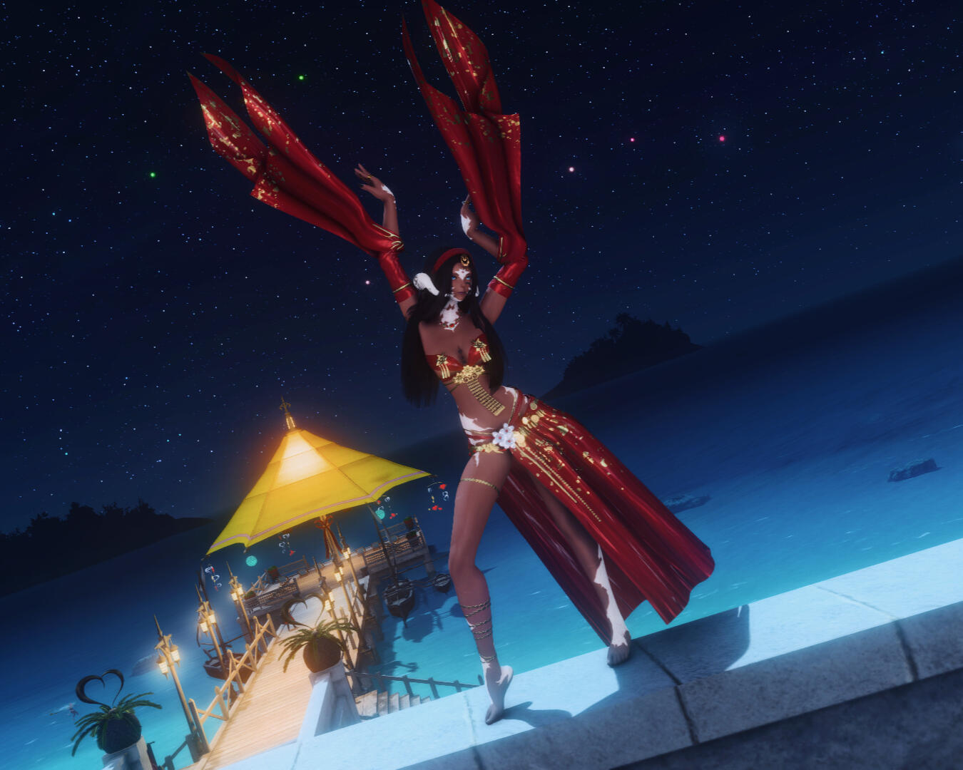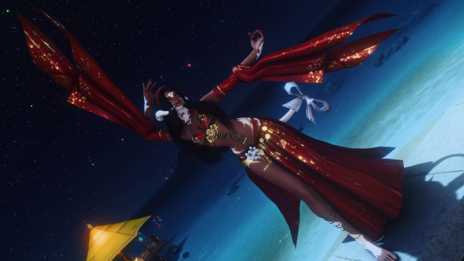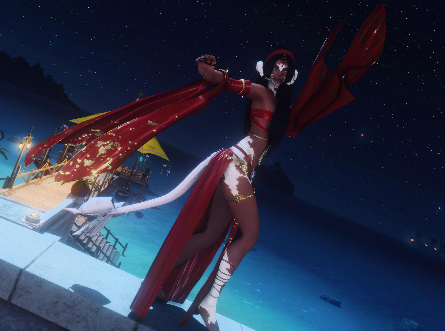 Shera ist tief in den traditionellen Tänzen ihrer Heimat Thavnair verwurzelt. Mit großer Hingabe und Respekt vermittelt sie die alten, sinnlichen und kraftvollen Bewegungen der thavnairischen Tanzkunst – stets mit der Eleganz und dem Stolz einer wahren Prinzessin der Wüsteninseln.